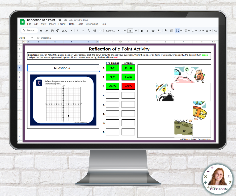 These are the most common self-checking activity since they are the easiest to create! Each time a student answers a question correctly, pieces of the picture appear.