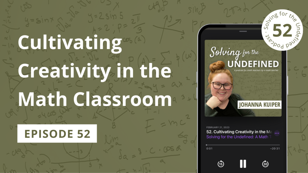 I want you to think back to the last time you saw a math class in a movie or TV show. Do you recall how math was depicted? Typically, it’s as a boring direct instruction lesson full of algorithms. But anyone who knows who truly knows math knows how freaking cool it is. So in today’s episode, I’m going to be sharing with you some tips on how to bring creativity to the math classroom. So students stopped seeing it as a boring, direct instruction type class, and instead, someplace that they can have fun. Let’s get started. Welcome to solving for the undefined podcast. I’m your host, Johanna, founder of Miss Kuiper’s Classroom, the place that equips teachers and creating a healthy math classroom where students can thrive, no matter their academic abilities. But it’s not always about the numbers. And that’s why I’m here, bringing you the formulas to solve your problems, math and otherwise, plus strategies on cultivating that necessary math mindset.