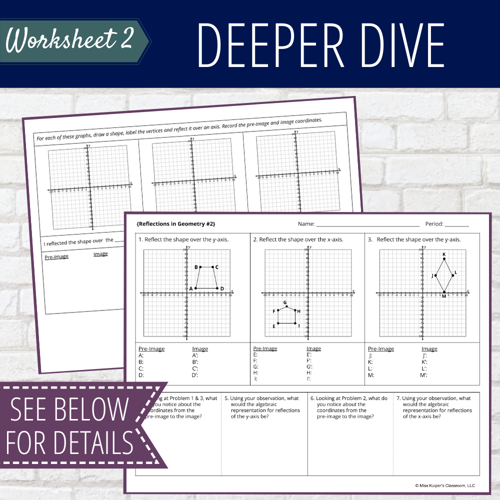 Page 7 & 8: Worksheet #1: Intro to reflection over x-axis & y-axis