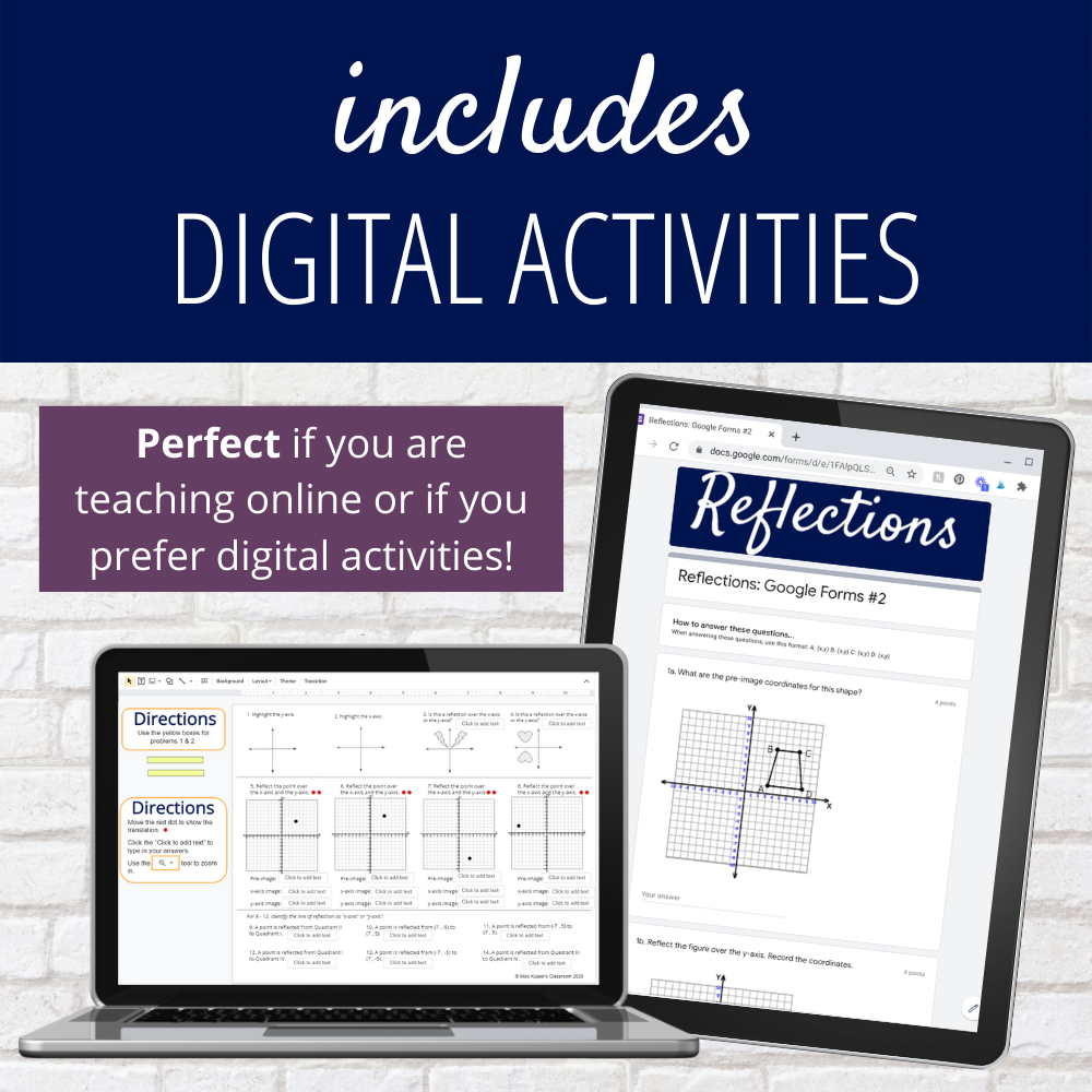 Are you looking for a reflections on a coordinate plane activity? Miss Kuiper’s Classroom has you covered with this Printable & Digital Geometric Transformations Reflections on a Coordinate Plane Worksheet Set.