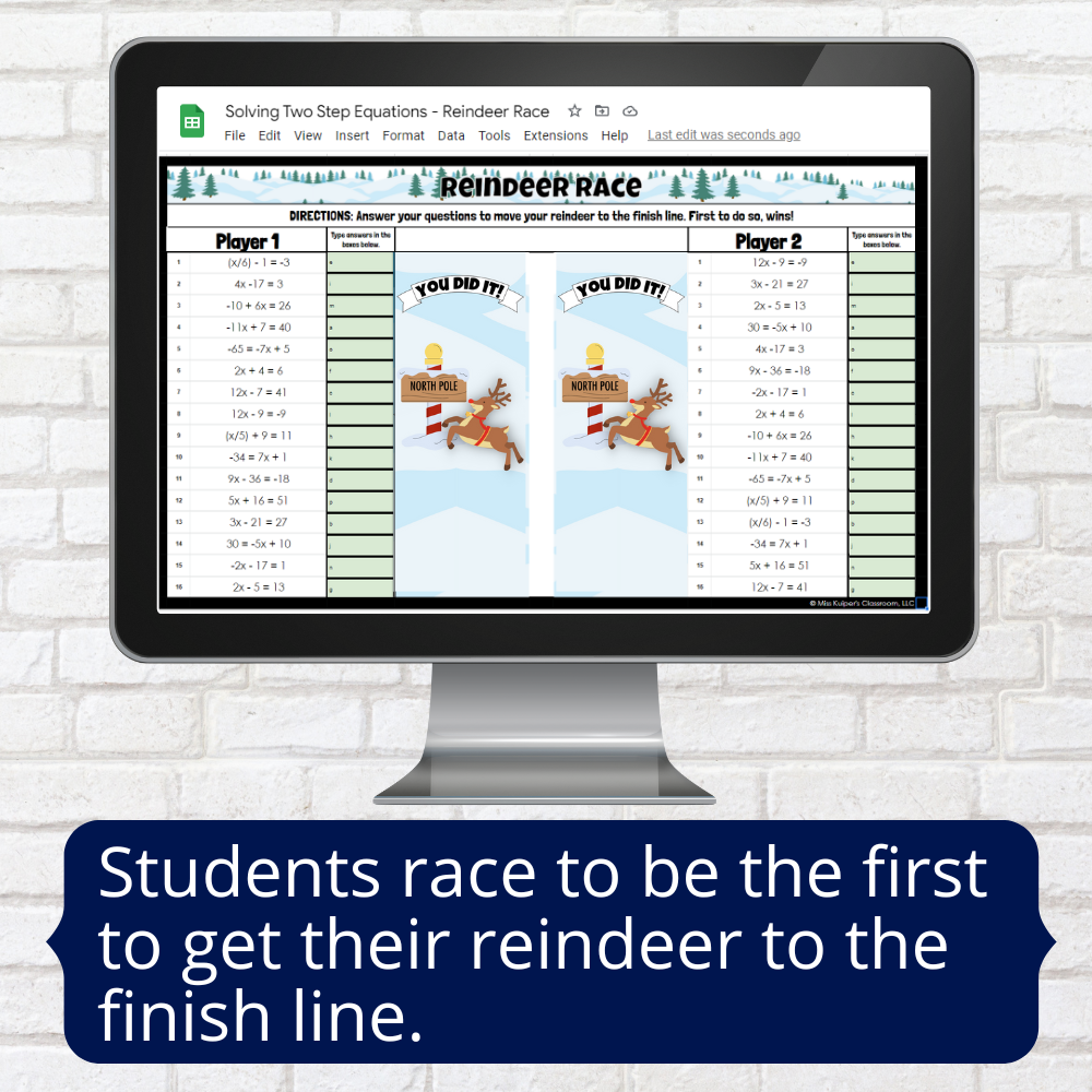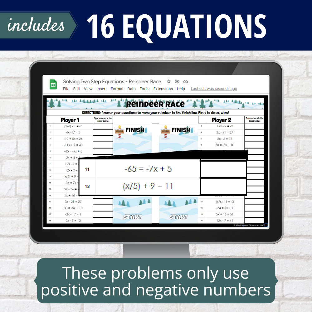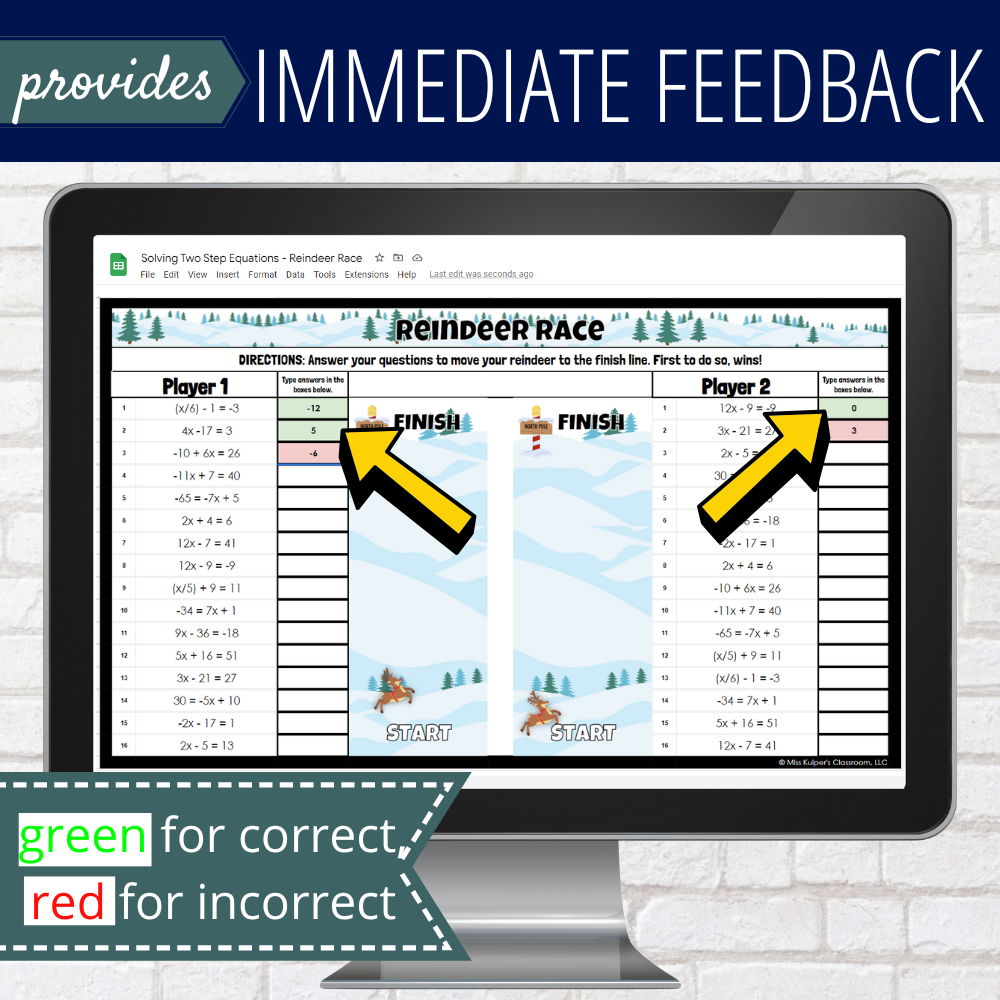 Are you looking for a solving two step equations holiday activity? This self-checking partner activity is the perfect festive thing for your students. See below for details.