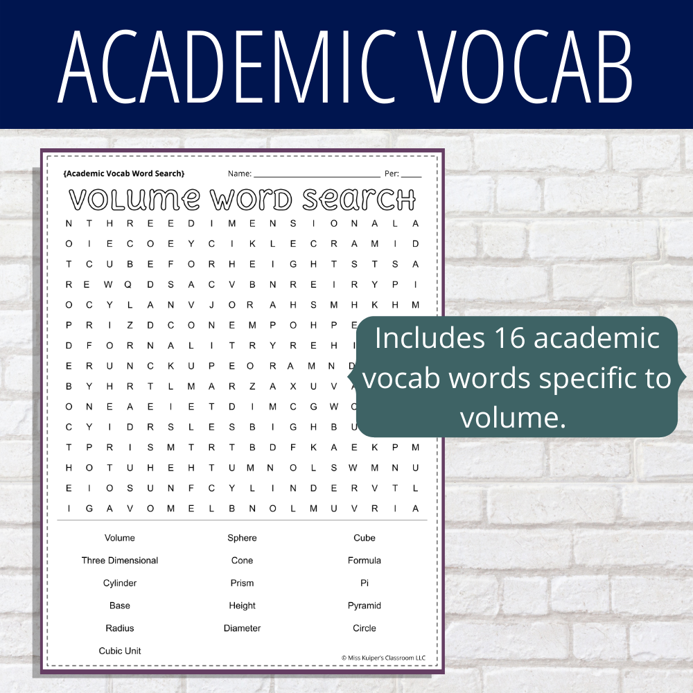 Need a fun way to review Volume Vocabulary? Miss Kuiper’s Classroom has you covered with this Volume Academic Vocab Word Search with your students!