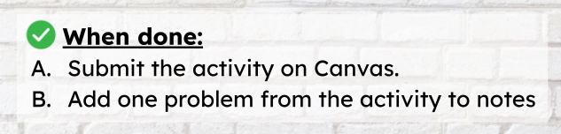 For a longer activity like a worksheet or digital activity, I would need something bigger. First, I always include what I want students to do with the activity when they are done.