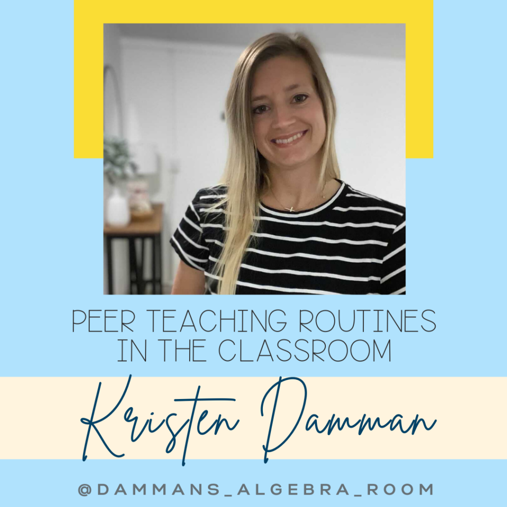 Hi, I’m Kristen, aka Mrs. Damman from @Dammansalgebraroom. I believe that 100% student participation is needed to ensure students are fully understanding the mathematical content. Therefore, with a combination of teaching strategies, such as peer teaching and hands-on learning, my students become active participants and engage in math conversations in my algebra classroom